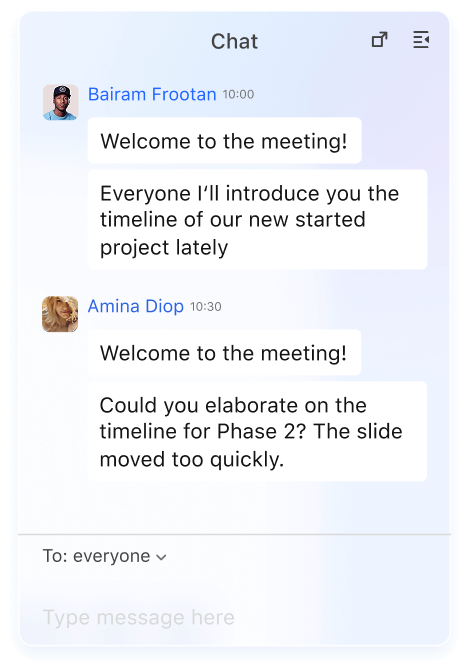 Crystal-clear 1:1 calls keep conversations distraction-free. For groups, interactive tools like in-meeting chat and hand-raising make discussions dynamic and inclusive.
