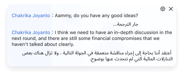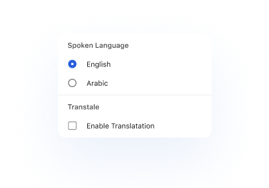 Live AI captions and translations (English ↔ Arabic) ensure seamless multilingual meetings. Speak freely, understand instantly.