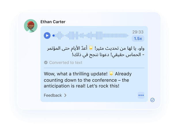 Break language barriers with real-time ​​translation​​, convert voice notes to text, and extract text from images—all in your chat. Work smarter, not harder.