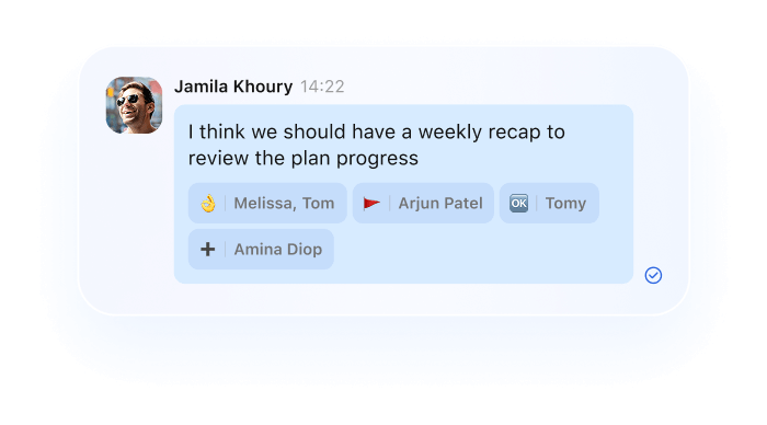 Reply to specific messages, forward chats, or react with emojis—keep conversations organized and engaging. Collaboration made effortless.